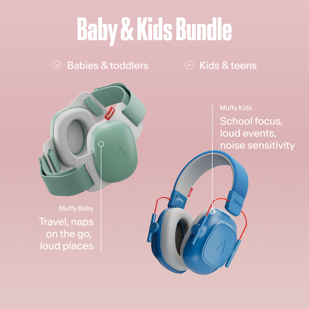 Enjoy every moment, at every age, without worry. With the Baby & Kids Bundle, you have everything you need in one go: the Alpine Muffy Baby and Muffy Kids. This set grows with your child — from nap times and busy school days to their very first family festival. Safe, comfortable, and made to last. The best start for little ears.