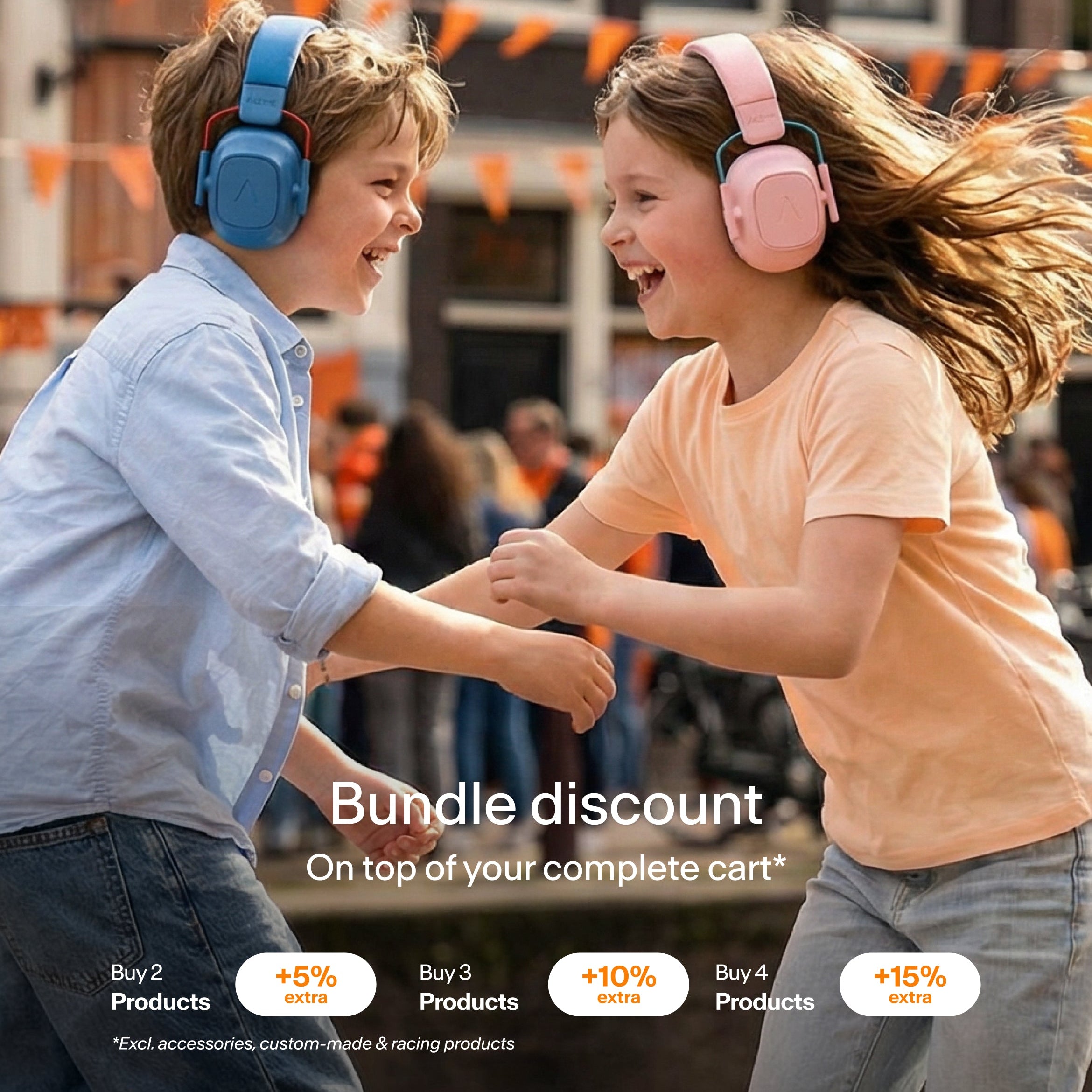 King’s Day is for everyone: from the royal couple to little princes and princesses, and of course, your entire group of friends. Order hearing protection for the whole group and stack your savings.