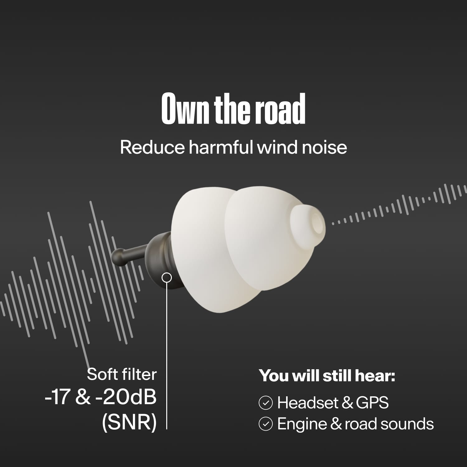 Motorcycle earplugs that reduce wind noise at any speed